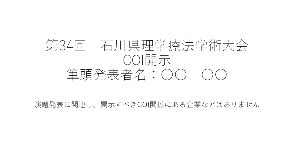タイトルスライドの後(2枚目)にCOI開示スライドを挿入してください。大会